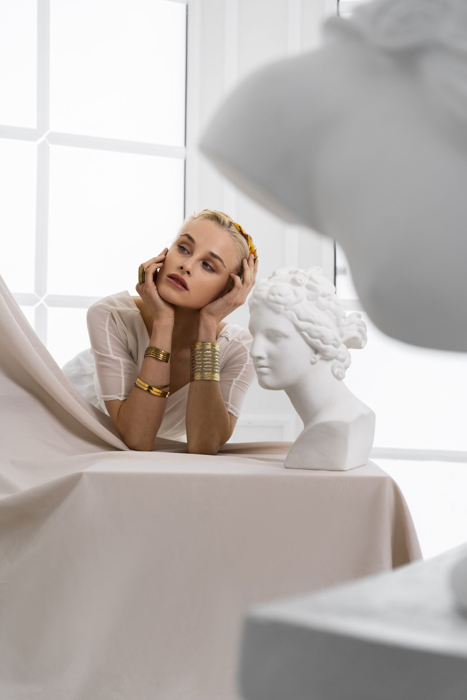 Peças como pérolas, brincos delicados ou anéis de ouro liso transmitem: